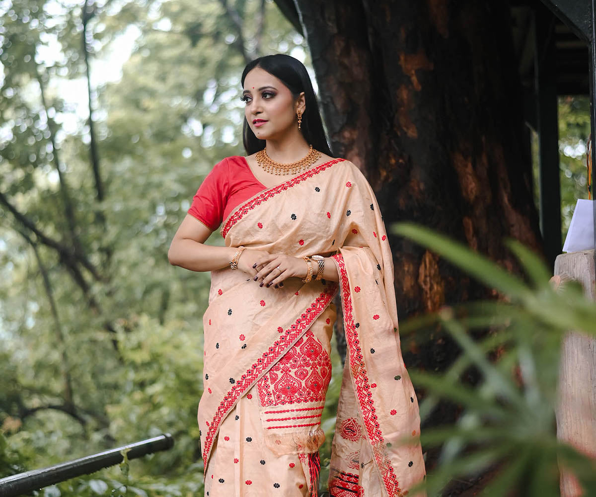 Handcrafted Assamese Mekhela Sador: A Timeless Elegance.