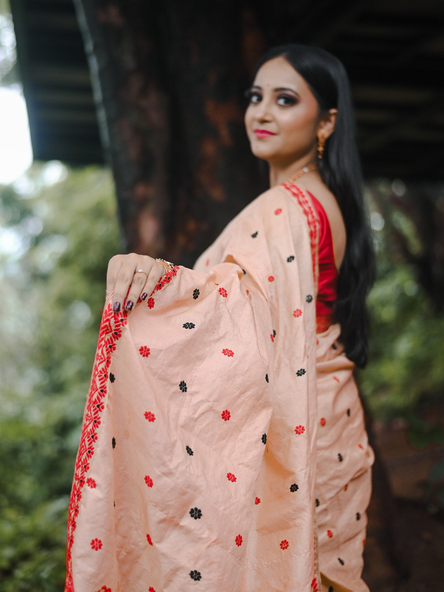 Elevate your wardrobe with Rongjuri's sophisticated mekhela sadors, perfect for any occasion.
